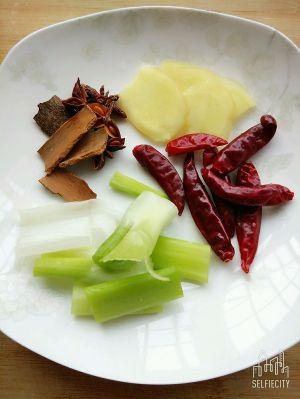 锅里添水,没过小排。放入生抽,老抽,料酒,剩下的葱姜蒜,大料。大火烧开转中火