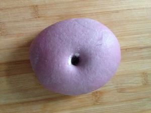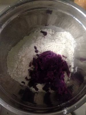 紫薯泥加适量面粉、酵母水搅拌成絮状。