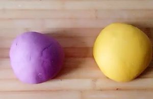 南瓜泥加面粉和酵母直接揉成一个南瓜面团。这样两个面团就准备好了。