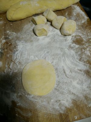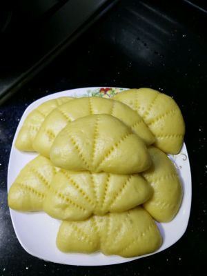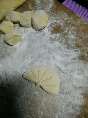 南瓜晾到30度温热,加入酵母,加面粉和成团,加点泡打粉,再充分柔均,醒发到2倍大