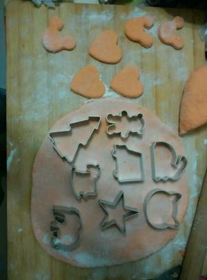然后用原汁发面,等到面发好,切成小块擀成适当厚度用小模型压出喜欢的形状