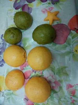 南瓜,蒸熟,捻碎,喜甜的可适当加糖。待南瓜泥温热时加入酵母,溶解后加入面粉。揉面至三光。