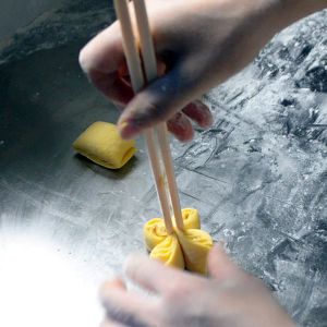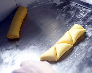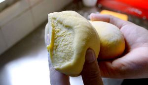 揉好的面团表面非常光滑,切面口光滑无粗大气孔。