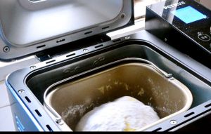 把面包桶安装在面包机上。启动菜单自定义和面,揉13分钟。
