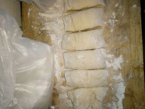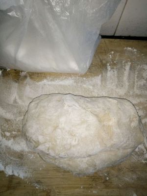 第二天放在案板上,加点面粉放黏板继续挪一会,