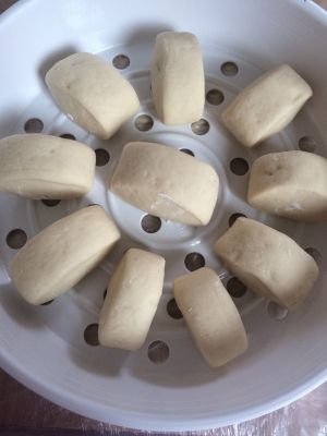 切成自己喜欢的样子,斜刀切也好看哦! 蒸锅里二次醒发15分钟左右。 大火蒸20-25分钟,焖5分钟