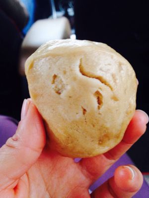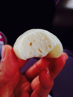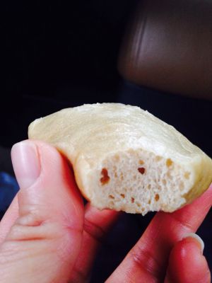 由于初次写没经验,新出炉的忘记拍照了,出门时随手抓起打包的馒头抓拍~