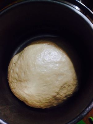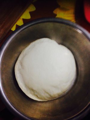 红糖和的面团发酵至两倍大(以往这面两小时就ok了,这回因为小小的失误,用了不太温的水和面,外加家里温度过低,室内估计就8度左右,这两团面傍晚6点就揉好了,到夜里9点还没好,第二天早上6点起来就这样了)
