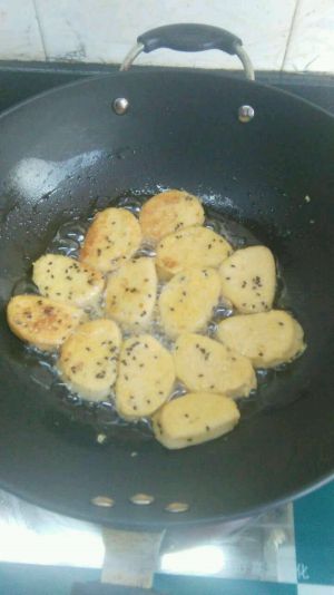 油锅热后转中小火,馒头片下锅煎,要不停的翻面,防止煎焦了。