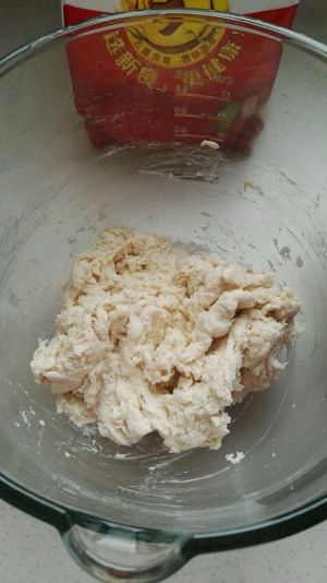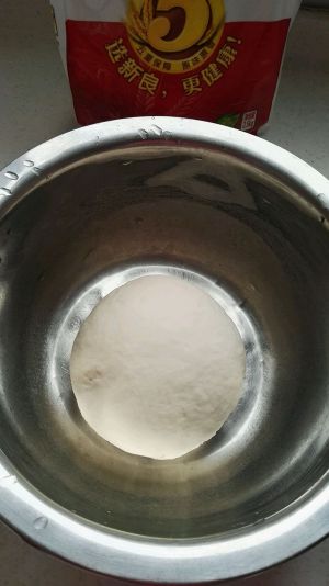 用厨师机和成光滑的面团(或用手和光滑既可),取出面团放盆里,把盆放温水锅内盖盖发酵(现在天冷,利用锅内温度、湿度帮助发酵。)