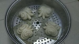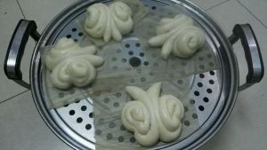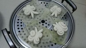 全部做好后,入蒸锅,不开火。发酵至2倍大,拿起来轻飘飘的。