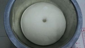 用盖子盖住使面团发酵,大概两个多小时(放在温度较高的地方可加快发酵)。