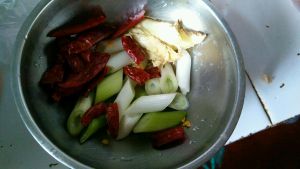 葱姜蒜切段,