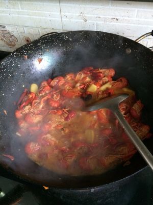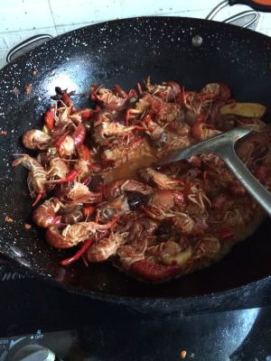 锅入猪油烧制五成热下去姜末,蒜末,小米椒爆香,调入耗油,豆瓣酱,永丰辣酱,辣妹子酱,白糖,盐,下去炸好的龙虾,冲去筒骨汤大火烧开转中火煮10分钟下去紫苏,鸡精,味精,香油,山胡椒油,芥末油炒匀,大火收汁,点缀葱花即可。
