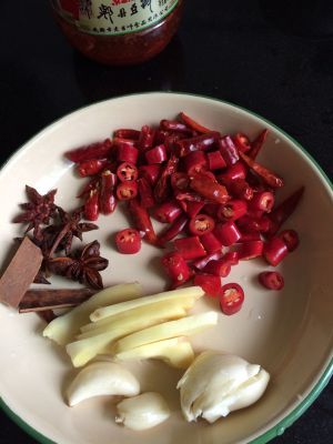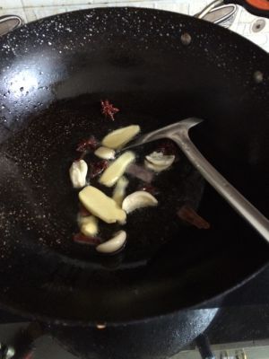 起锅油烧热,放入姜蒜八角桂皮超出香味