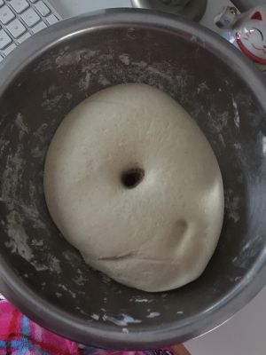 面和好后开始揉面啦…揉面至面团光滑…做到面净…盆净…手净~然后盆上盖上湿毛巾…防止风干…静待发酵… 20度室温以上大概两个小时就可发酵成功…冬天气温低时间可能需要长点…