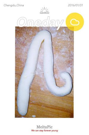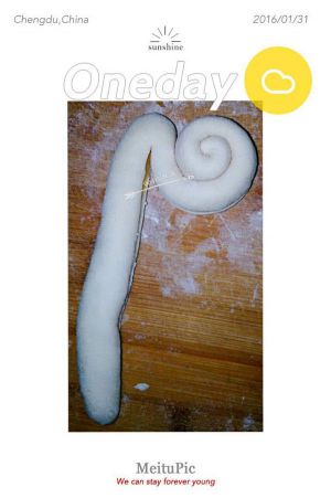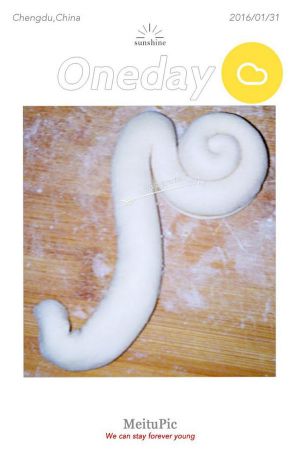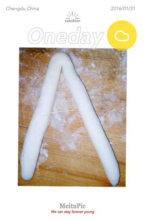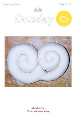取两个面胚,尾部相对(接触面抹点水)。