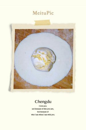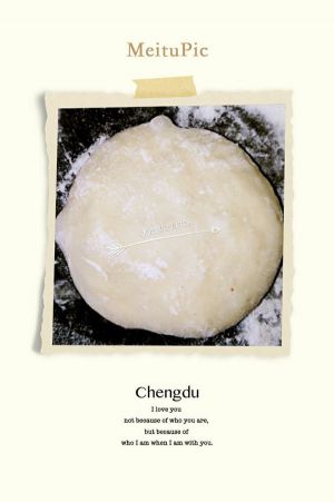 加入糖的面粉+牛奶或水,拌成絮状,再用手揉成面团,到三光(盆光、手光、面团光)就可以了。