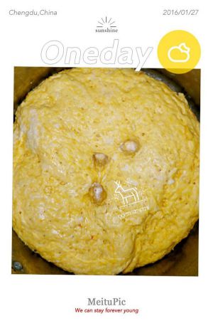 目测南瓜面团发酵后的体积至原来体积的2倍大小即可。用手指沾些面粉插进去,如果出现不立即回弹的凹洞就表明面团发酵完成了。