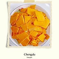 南瓜去皮,切小块,大概蒸25分钟。