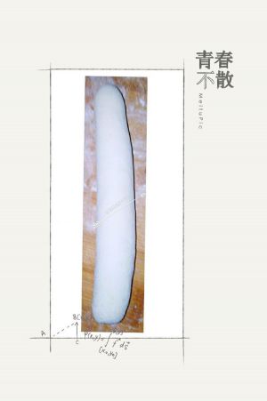 把发好的面放到干净的案板上,撒一点干面粉用力揉揉到面团表面光滑,揉成如图的长条!