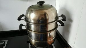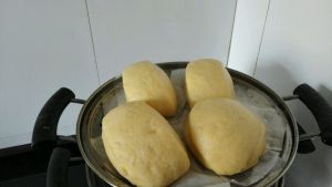先不要急着点火蒸馒头,馒头还要在蒸锅里继续醒发20分钟后,馒头的体积又变大了一半再点火