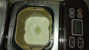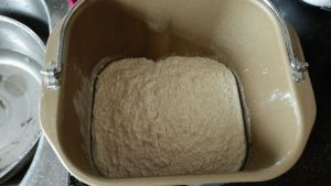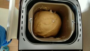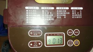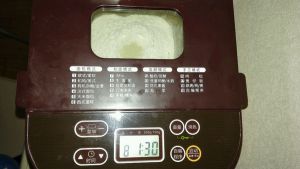 在面包机内继续搅拌一次,选9自定义和面模式。
