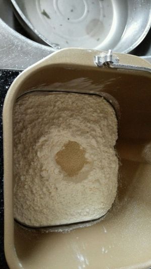 在面粉上挖个小洞,放入3克安琪酵母粉