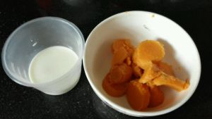 蒸熟的红薯去皮切小块,配50ml牛奶