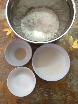 先把白面➕糖,在把酵母放温水化开放入,揉成面团等待醒发