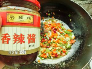 加入适量的香辣酱一起爆炒3~5分钟。加入适量的盐。