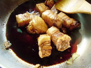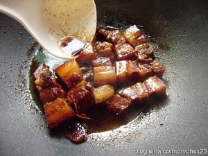 等到汤汁变稠准备收汁时加入适量的盐,因汤汁中有糖,收汁时注意大火翻炒,否则很容易糊锅。