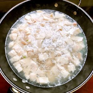 水滚后改小火,此时再放入一小块冰糖,炖2小时