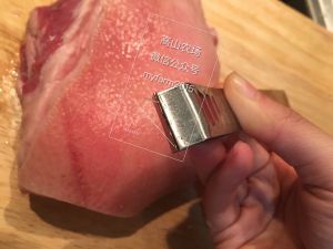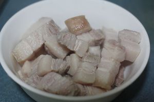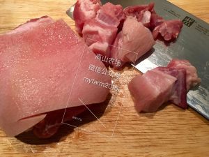 选用250g左右的带皮带油猪肉,人多可以增加猪肉量