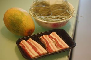 准备材料,红薯粉条浸泡20分钟,木瓜削皮切方块。