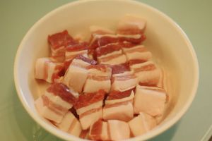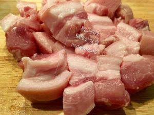 五花肉切块。