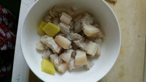 砂锅中倒入开水盖过五花肉,加1汤匙盐,大火煮开后转小火炖一小时,最后大火将汁收浓即可。