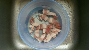 把肉放入冷水锅中。水开后两分钟后捞出 沥干