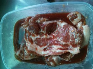 肉洗干净,放入保鲜盒,倒入所有酱料和配料,搅拌后放入冰箱冷藏12--24小时,中途每隔几小时拿出来翻个面,让其完全入味;