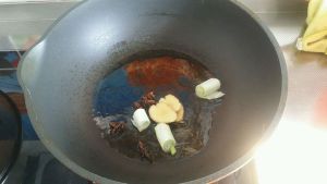 ,锅中放入少许油加入葱、姜、八角煸香。