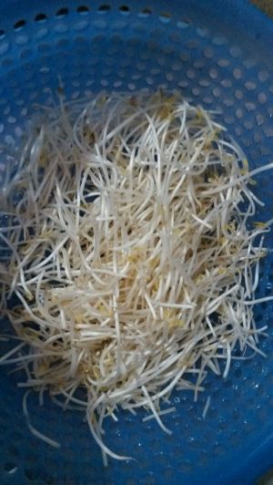热锅底油,放入鱼片滑炒,等到鱼片变色后,将鱼片倒入汤碗里。 锅留底油,炒熟豆芽,放在碗里。 把香菜末放在碗里点缀。