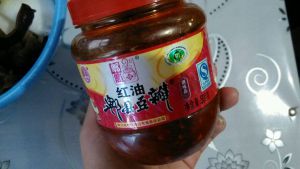 少许油烧热后倒入姜蒜豆瓣酱辣椒和花椒炒出红油。