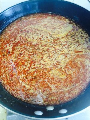 这个步骤忘记照相了、锅里放油,把麻辣鱼料整袋放里翻炒几下,后加水就可以啦!