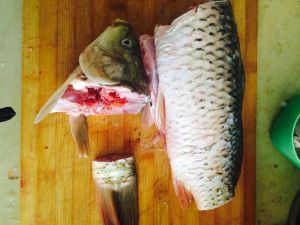 2条活鱼准备好,最好是活鱼,死了超过1小时后肉就不嫩啦!今天美买到草鱼,用鲤鱼代替也可以的!