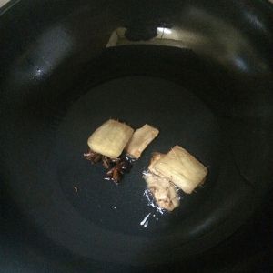 油锅烧热,爆香八角与姜片。