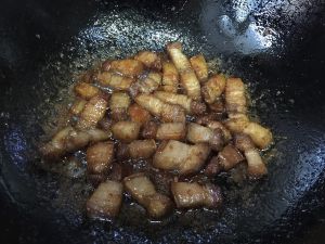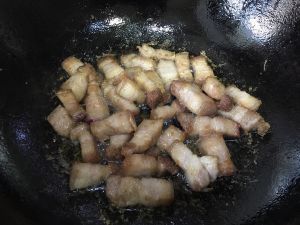 炒出五花肉里的油,倒出油。锅内只留少量油即可。