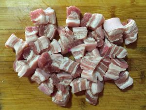 五花肉买来时让卖家帮忙切好,回家洗干净沥干备用。