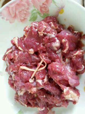 牛肉切片或者条用盐,糖,生粉腌一会儿