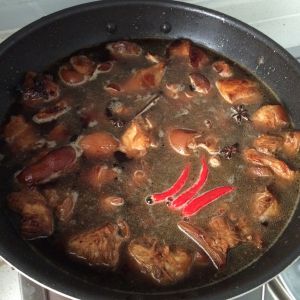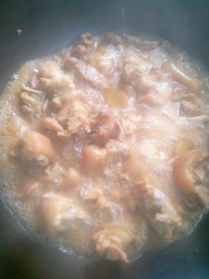 水开后转入砂锅,小火三个小时,最后大火收汁。