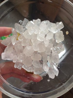 倒入适量小块冰糖(冰糖的味道比砂糖好),可以打碎了更好入味,我这个就有点儿大了